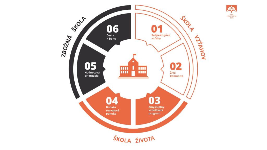 Piaristická škola stojí na troch pilieroch – škola vzťahov, škola života a zbožná škola. Každý pilier zahŕňa dve oblasti a znázorňuje to, ako chceme, aby naše školy vyzerali a fungovali v roku 2030.